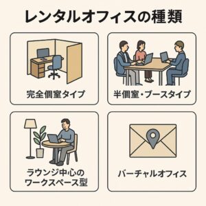 レンタルオフィスと言っても、実はさまざまなタイプがあります。ここでは、代表的な種類とその特徴をわかりやすく整理します。